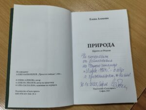 С много емоция, радост и споделено вълнение премина вечерта, посветена на Деня на народните будители в читалище „Искра-1964“. Представянето на новата книга на ЕЛЕНА АЛЕКОВА – „Природа – Щрихи от Родопа“ събра приятелите и членовете на литературен клуб „Живи думи“. Книгата беше представена от Виолета Станиславова, писател, а музикалните изпълнения бяха от Лина Венциславова и Орлин Миланов, поетът бард.