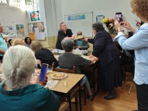 „Зинка Чаушева, една от нашите любими поетеси, отпразнува своя житейски юбилей в читалище „Искра-1964“. Вечерта, беше наситена с емоции, нови стихове и много аплодисменти. Райчо Русев, като редактор на новата книга на Зинка Чаушева „Въглени в снега“, отбеляза, че книгата е като един светъл лъч, който носи слънце и светлина. Други поети от литературния клуб „Живи думи“ прочетоха свои любими стихове. Вечерта на приятелството, както я нарече Зинка Чаушева беше наситена и с музикалните изпълнения на Лина Венциславова, пиано и Мария Скабрина, китара и Пламен Маслев, мандолина. На многая лета на Зинка и на добър час на юбилейната й книга!“ Ирина Славчева
